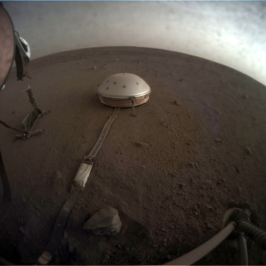 Le 19 décembre 2018, soit 1 mois après l’arrivée de la sonde, le bras d’InSight déposa pour la première fois un sismomètre sur la surface d’une autre planète que la Terre !