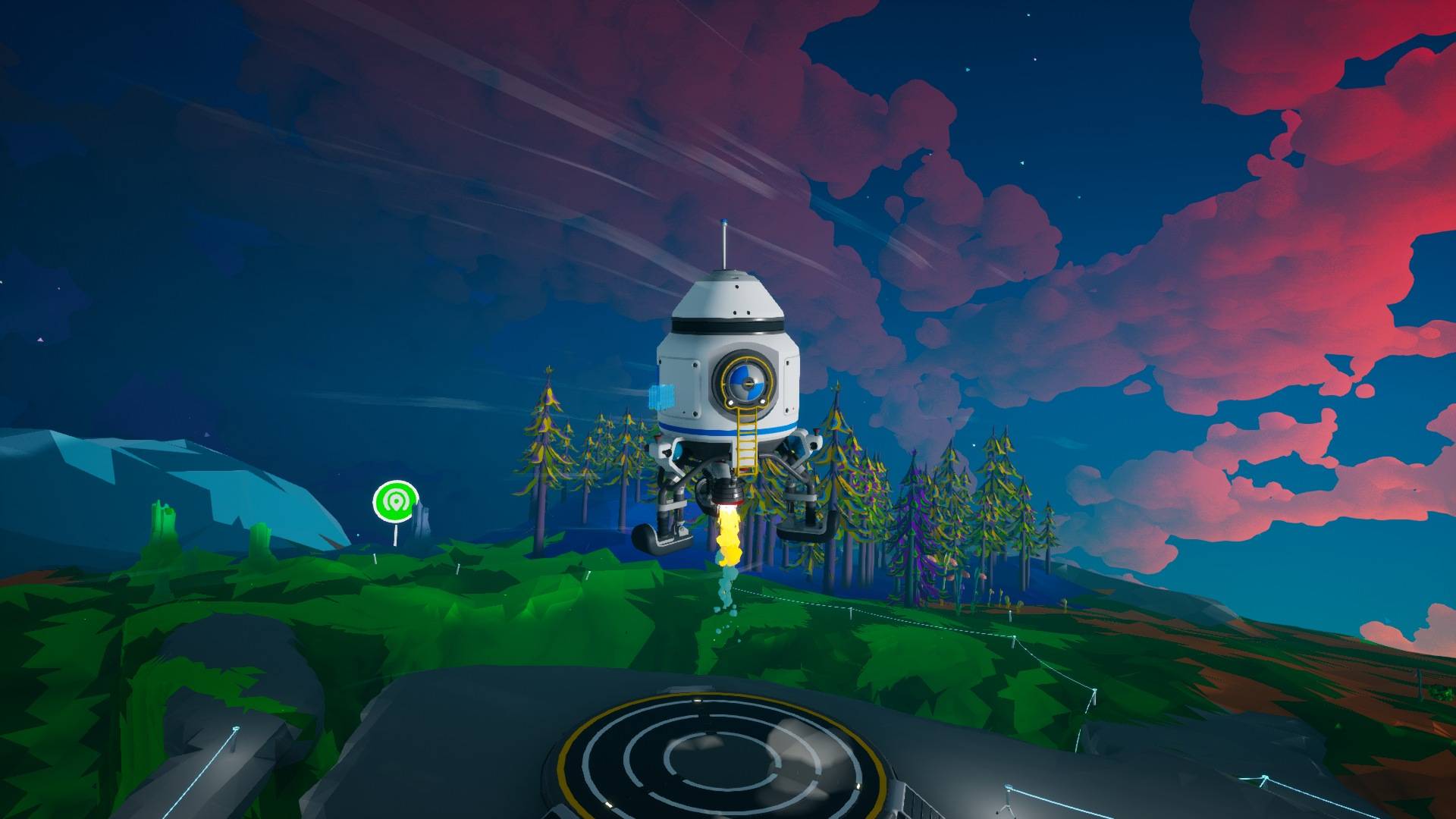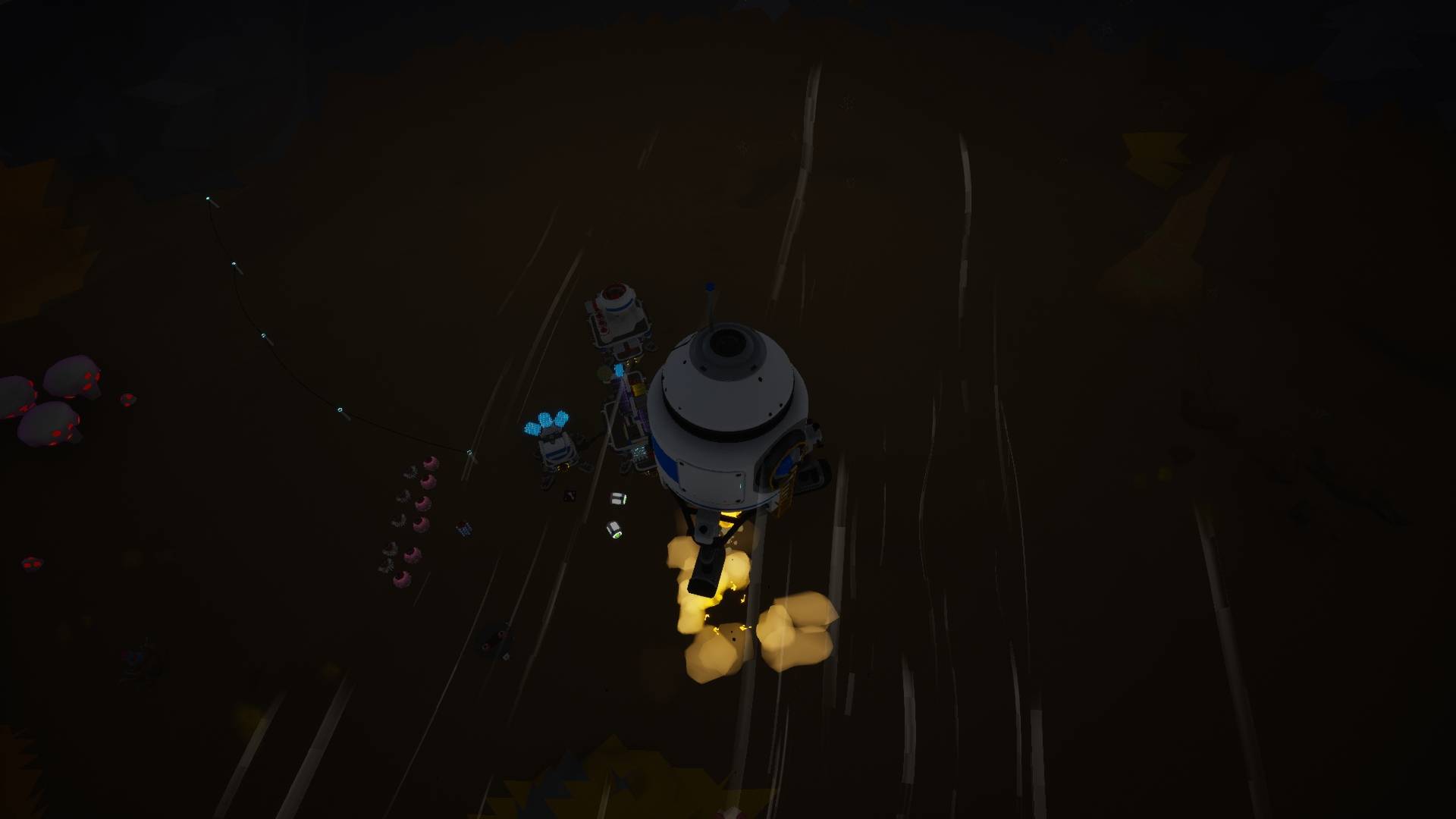 Ma première zone d’atterrissage ne convenant pas à mes attentes, j’ai re-décollé pour me poser un peu plus loin… grossière erreur ! Une fois atterri sur cette nouvelle zone, je me suis rendu compte que mon propulseur était tout cassé !