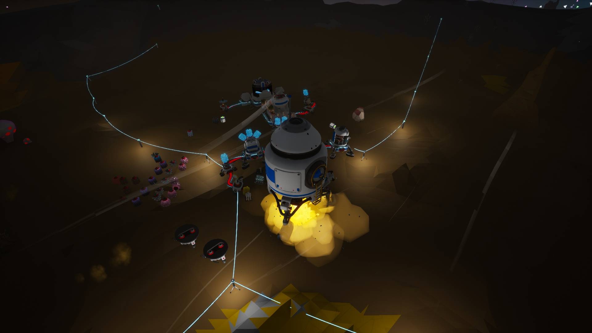 Je vous avais laissé, lors du précédent et premier article de notre périple, sur une photo d’une petite, mais pas moins séduisante, fusée. Préfigurant donc une balade interplanétaire. On lève aussi une partie du voile sur les structures mystérieuses, on continue à agrandir la base et on crée des infrastructures autoroutières.