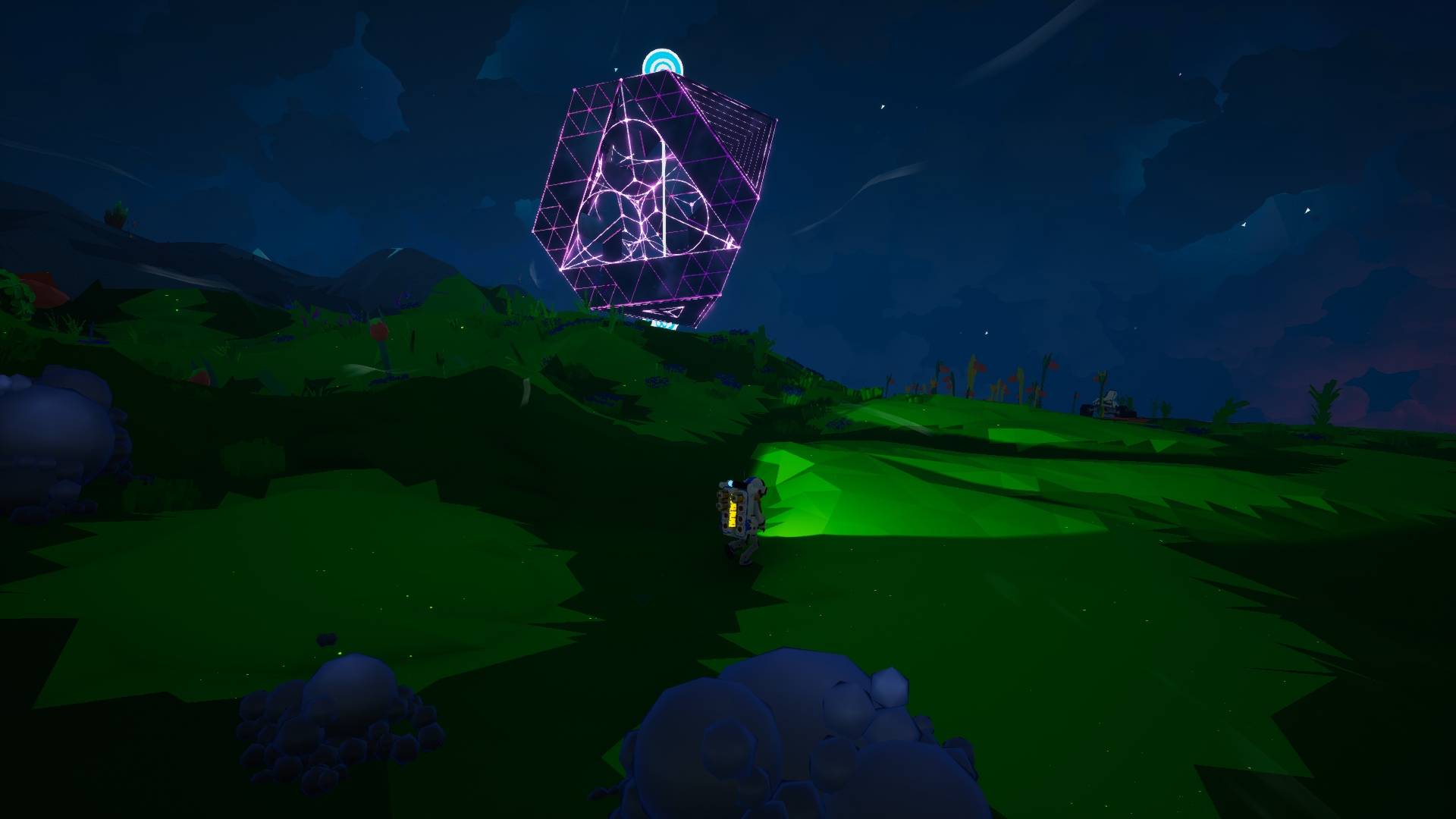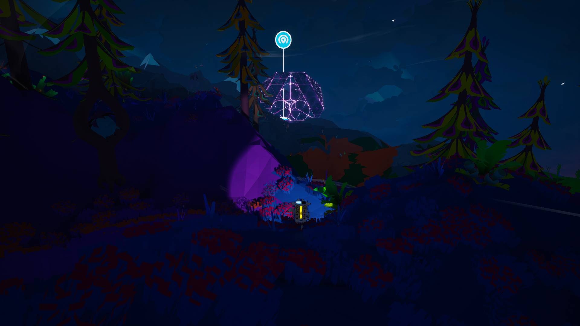 Mais le temps est venu de découvrir ce que renferme ces structures. Je me suis donc mis en route vers celle la plus proche de la base ! Elles sont relativement faciles à repérer grâce à leur faisceau lumineux pointé vers le ciel.