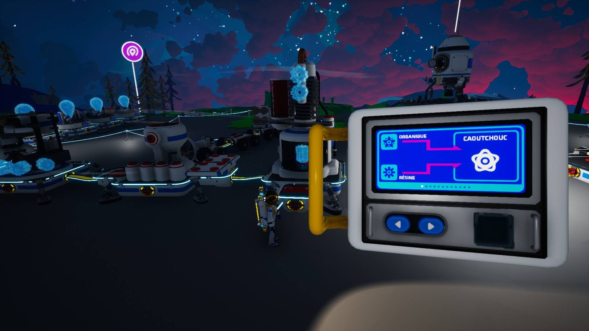 Et pour aller encore plus loin, certaines combinaisons ont besoin d’un carburant sous forme de gaz… Et pour accumuler ce gaz, il faut un Condensateur atmosphérique. Il va falloir forcément arpenter toutes les planètes à atmosphère pour récupérer le gaz voulu. Mais bon, n’allons pas trop vite, ici on prend notre temps. Il reste encore de nombreuses choses à faire avant cela.