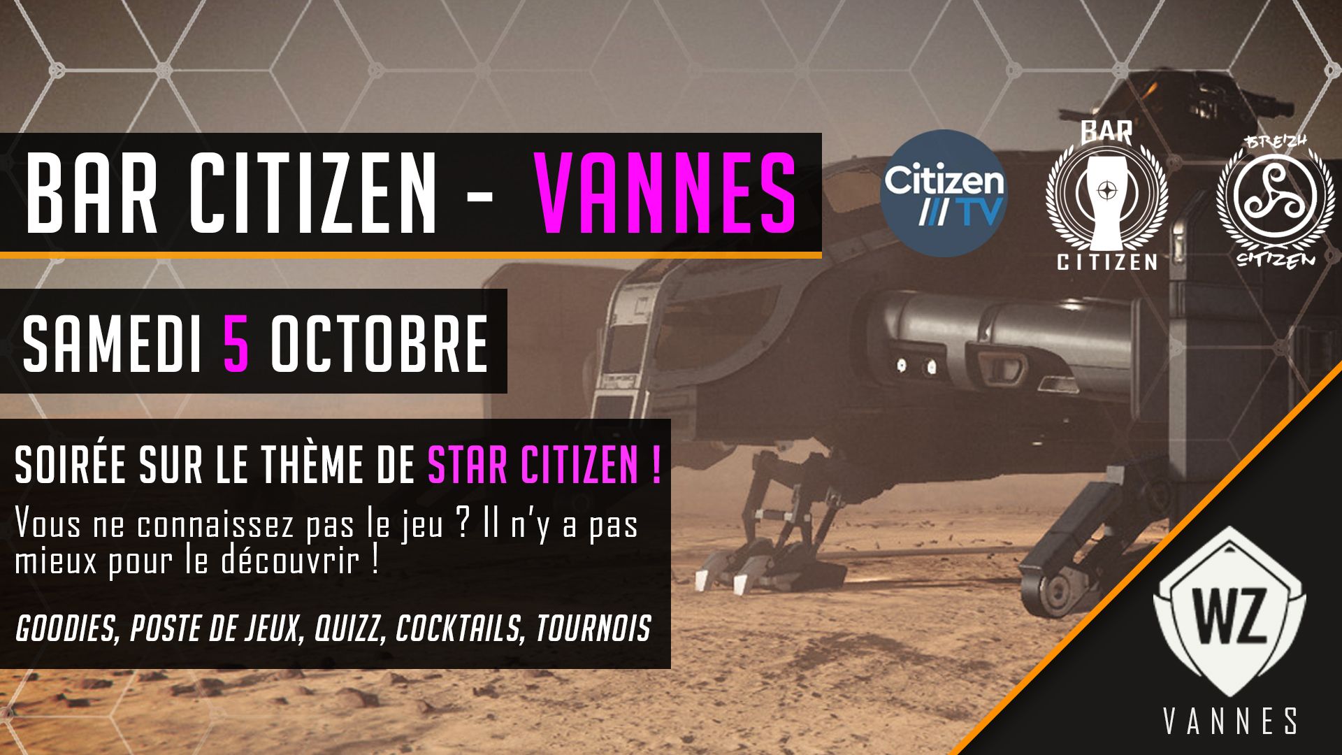 Les Bars WarpZone et Breizh Citizen continuent leur Star-City-Zen tour dans le Grand Ouest ! Après leurs deux Bar Citizen de Rennes et de Lannion, c’est au tour du WarpZone de Vannes d’y passer !
