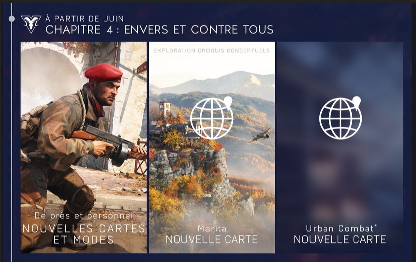 • Pour finirune deuxième nouvelle carte pour ce chapitre 4 viendra compléter le catalogue, mais celle-ci et encore secrète, nous vous en dirons plus en temps voulu. Selon DICE, il s’agirait d’une carte bien connue des vétérans de la franchise.