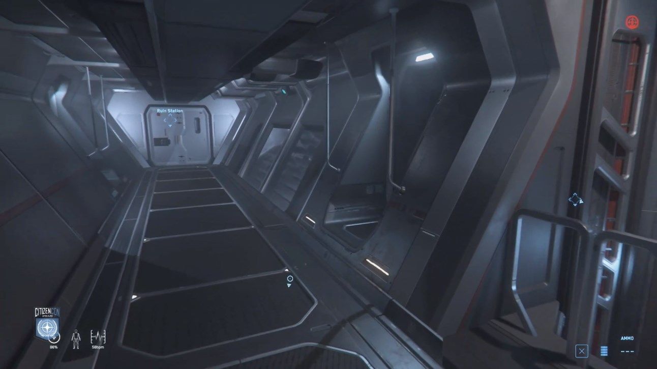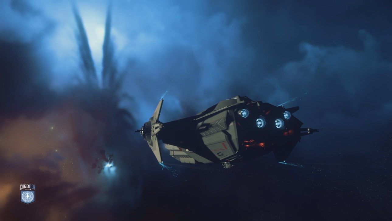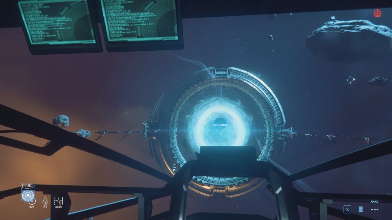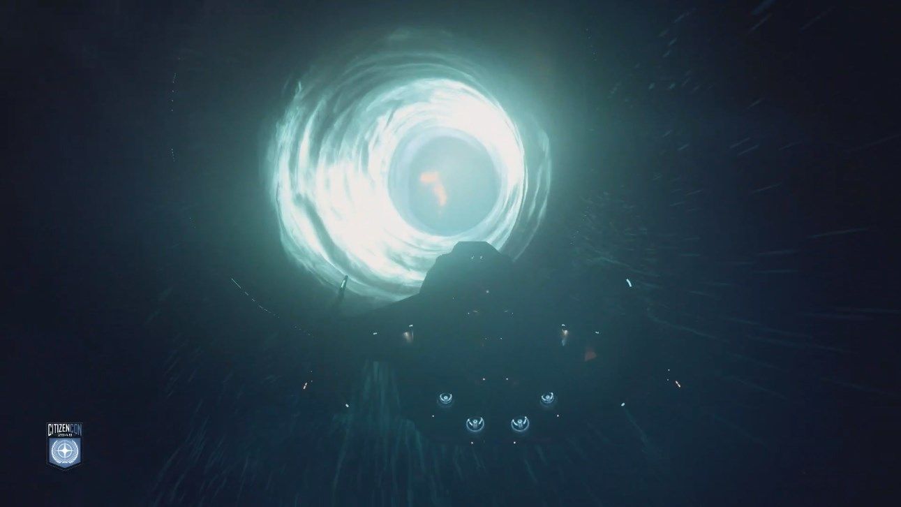 Le Jump Point est conforme à ce qui a été annoncé lors la CitizenCon de 2015, il est très sympathique même si nous n’accrochons pas trop au design organique et qu’il n’y ait pas vraiment de gameplay à proprement parler, seul un mouvement haut/bas/droite/gauche est possible pour éviter les colonnes de vide dans le trou de ver.