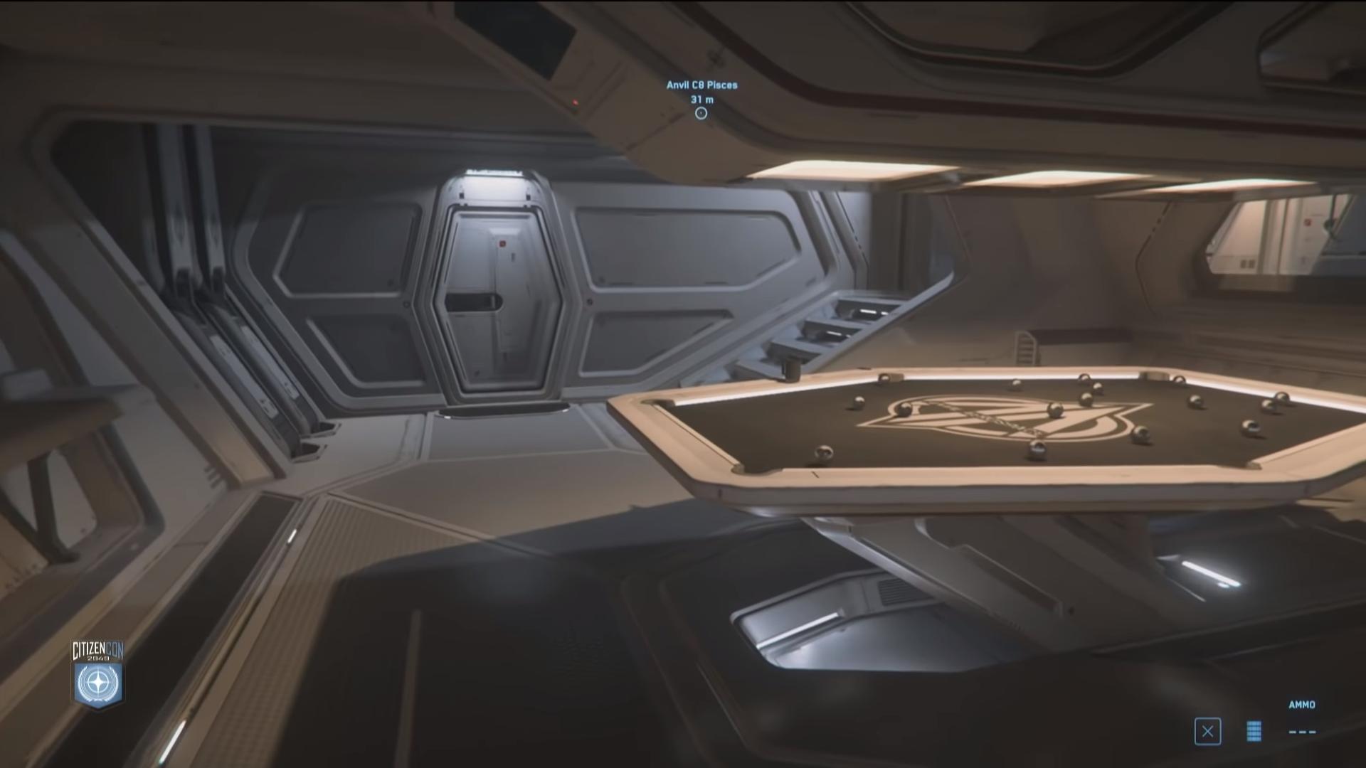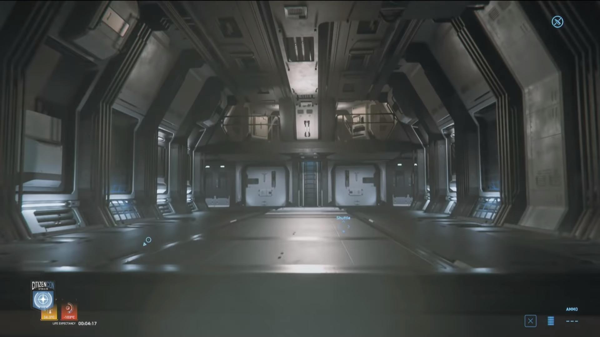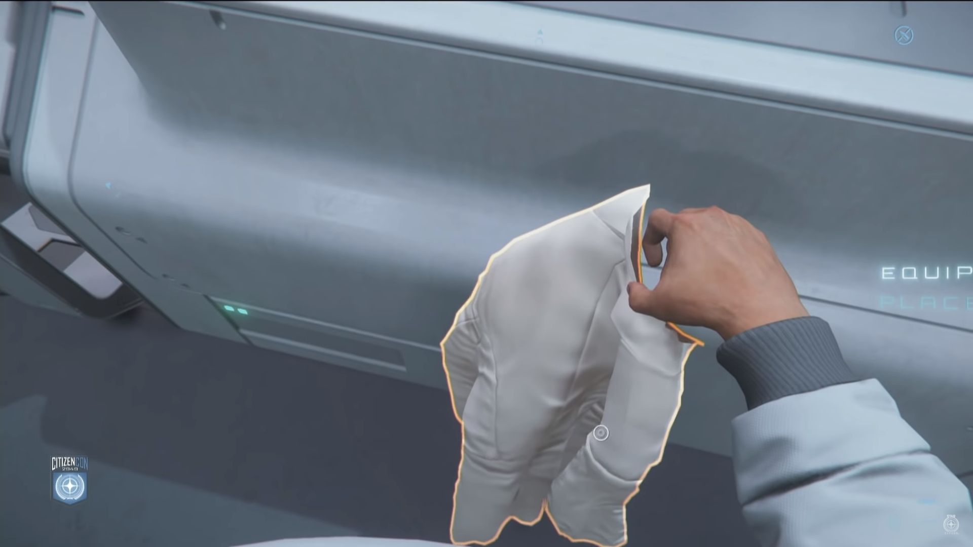 Dans cette première partie de keynote, la session de gameplay commence par un réveil sur l’Anvil Carrack. Nous y découvrons un petit aperçu de l’inventaire physique avec des habits dans une armoire.