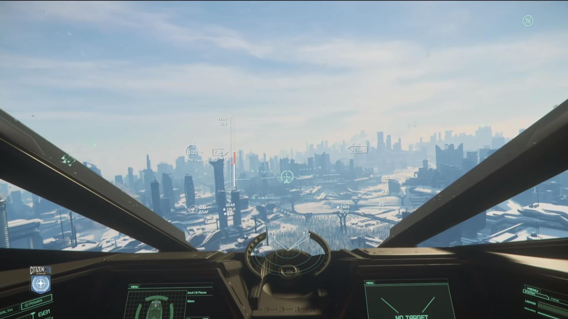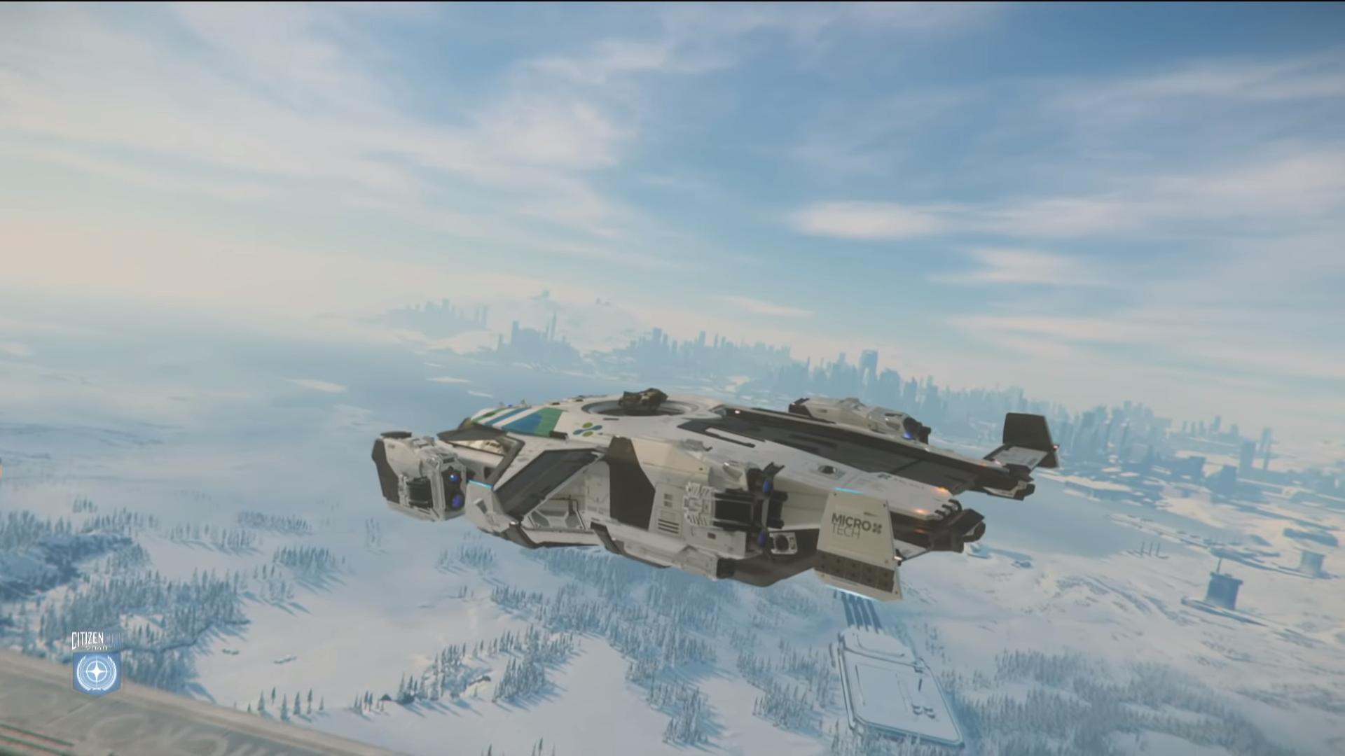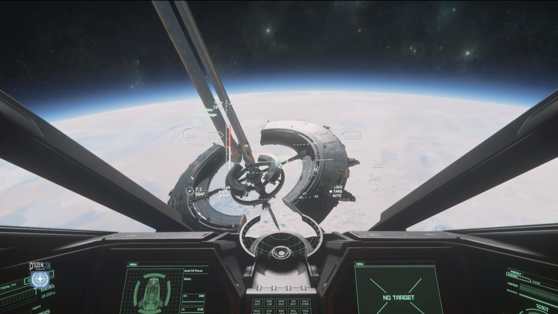 Les démonstrateurs prennent donc la direction de microTech et embarquent dans l’Anvil Pisces pour atteindre New Babbage. On découvrira pendant la descente un nouveau type de station spatiale en orbite que les joueurs pourront utiliser comme point de spawn en atterrissant dessus de la même manière qu’une zone principale.