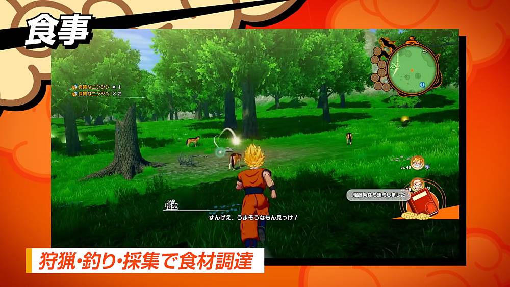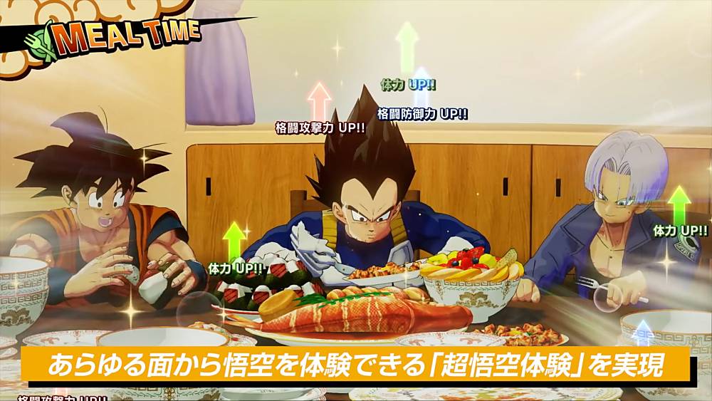 On peut donc y apercevoir nos héros, à travers différents combats, mais également un passage sur la pêche, la chasse, l’importance de la nourriture avec de bons et copieux plats préparés par Chichi afin d’obtenir quelques bonus.