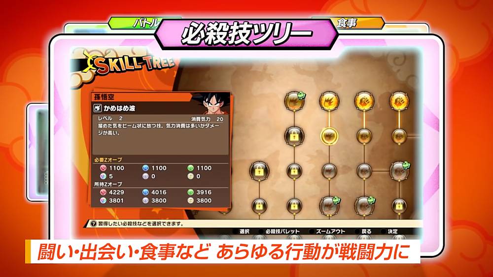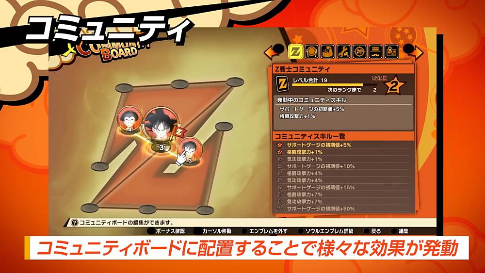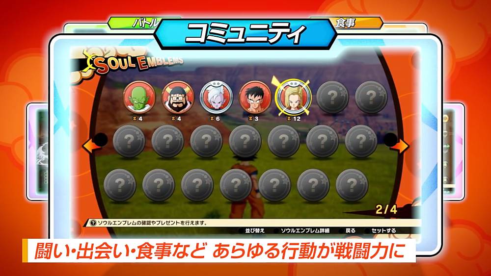 Bien sûr, il y a aussi de l’entraînement pour gagner en niveau, la récolte des Orbes Z à dépenser dans l’arbre de compétence, les histoires secondaires inédites pour débloquer des « Emblèmes d’Âme » afin de les ajouter sur le Tableau Communautaire pour débloquer différents bonus etc.