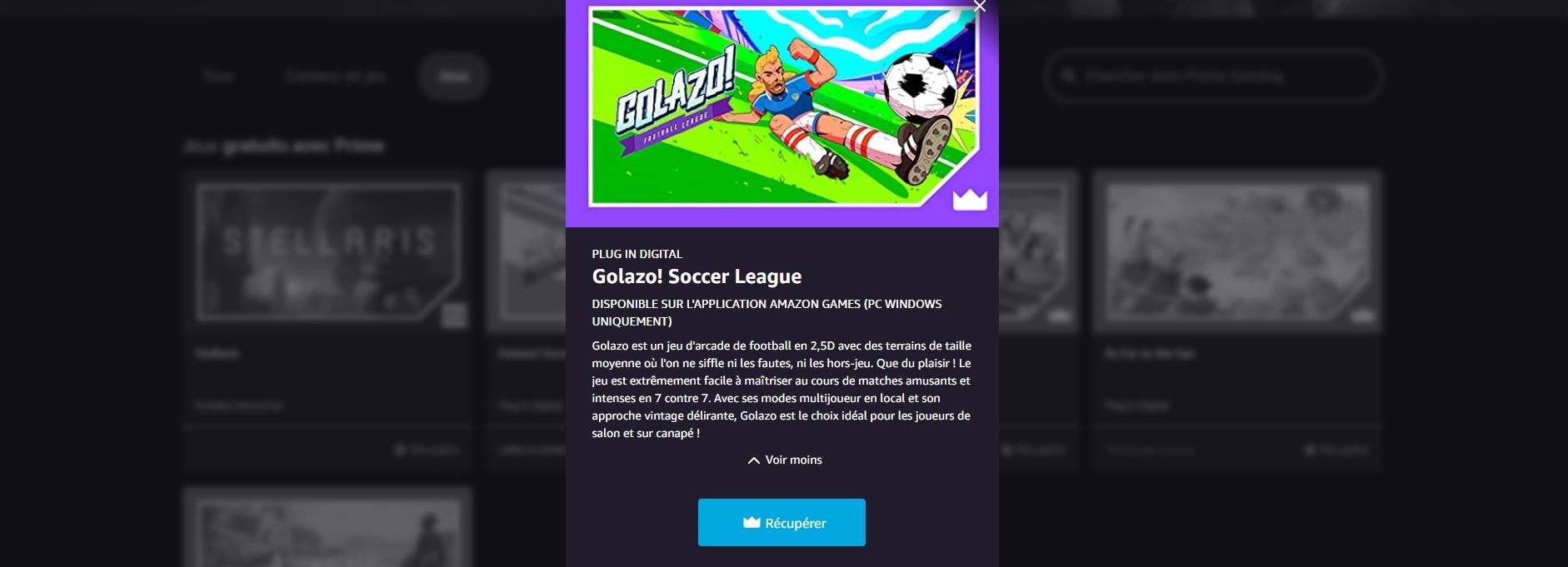 On se retrouve pour vous présenter les jeux gratuits que propose Prime Gaming, et ce pour une durée limitée ! Naturellement, une fois le jeu acquis, il est à vous pour toujours ! Cette semaine, Prime Gaming propose le jeu de foot : Golazo! Soccer League.