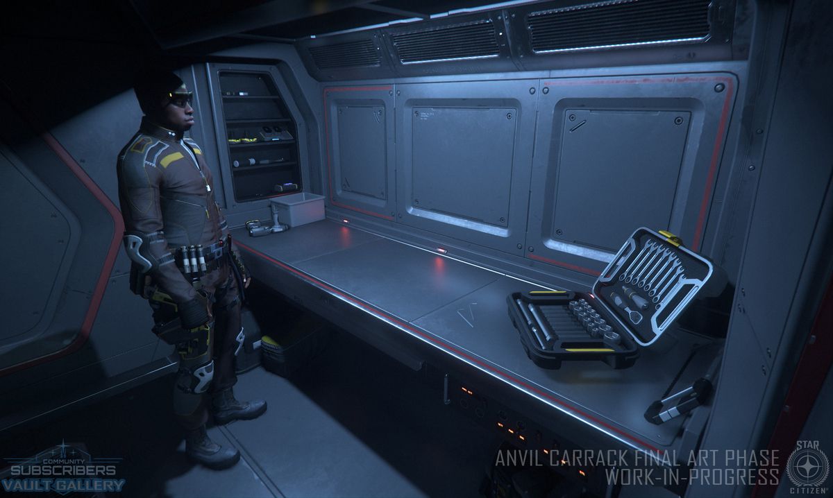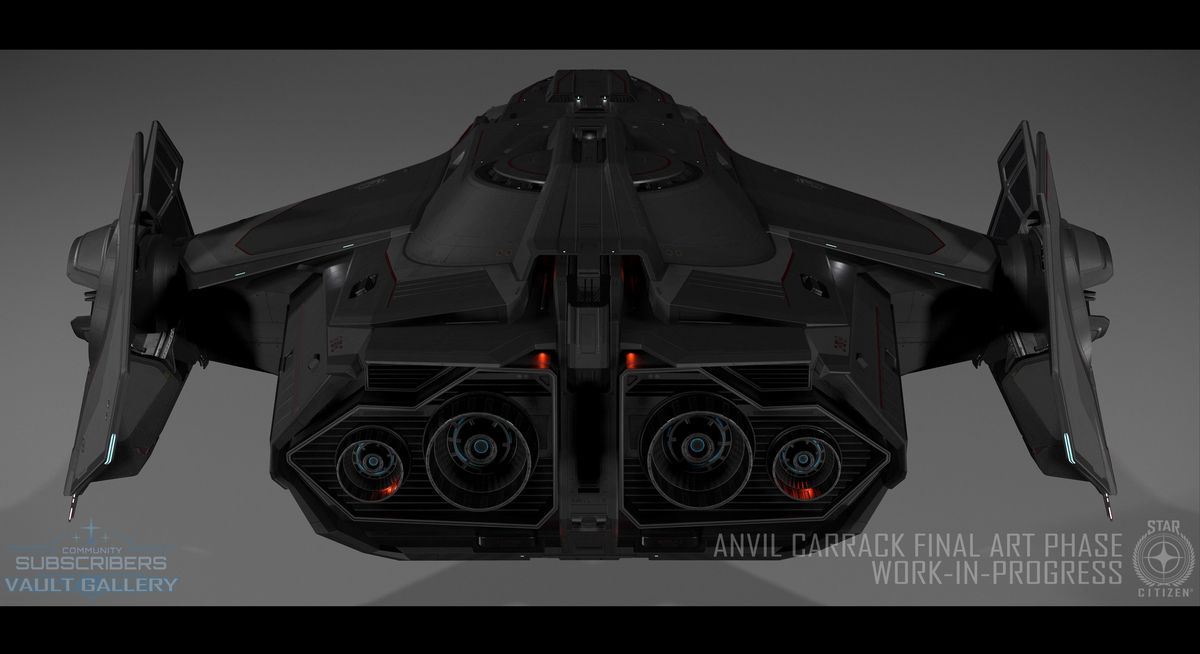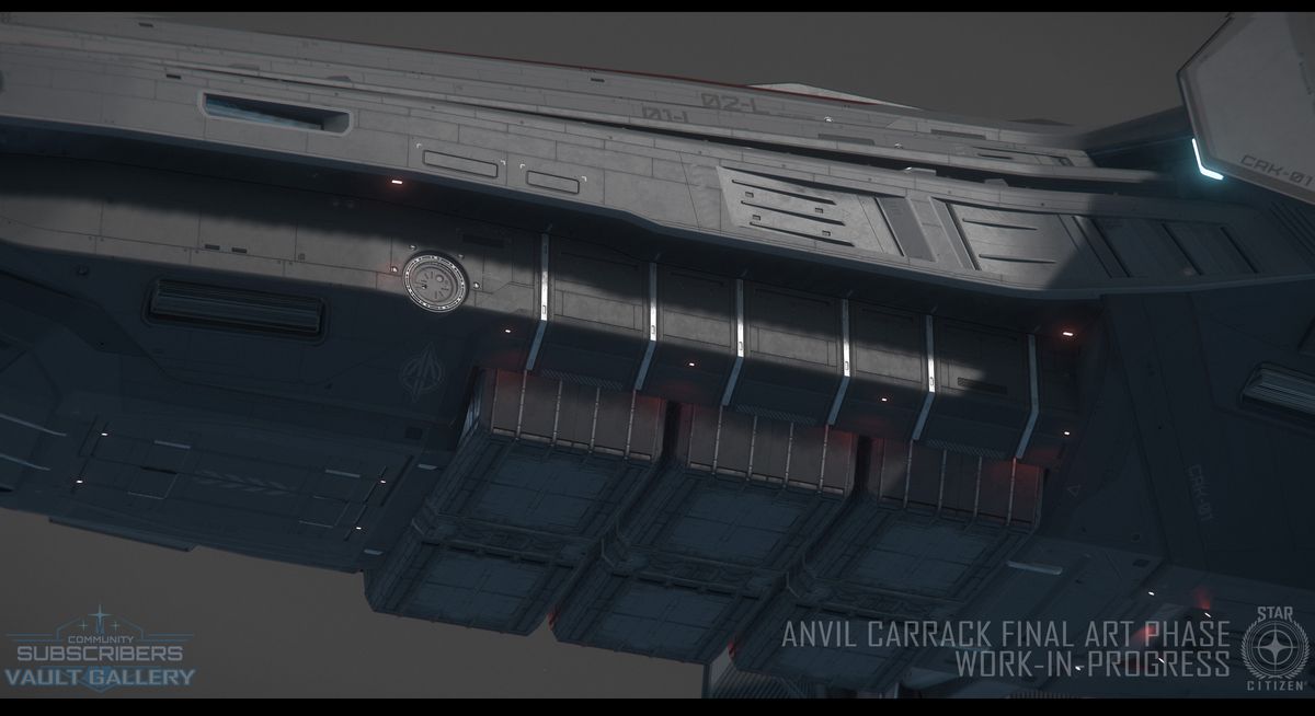 L’Anvil Carrack rentre en phase finale de conception, cependant les équipes ont déjà commencé en parallèle la création des LOD (modèles plus simple en fonction de la distance), la lumière et les états détruits des différentes parties du vaisseau.