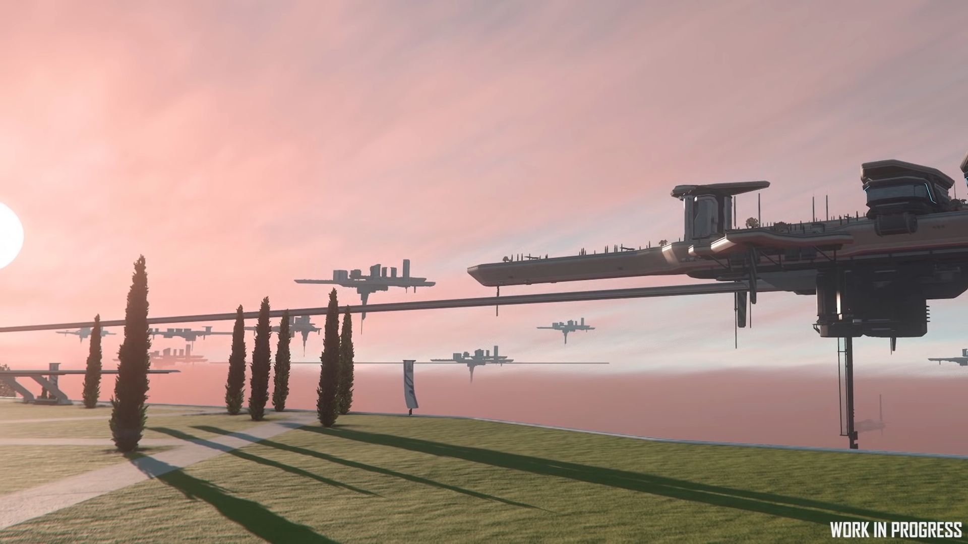 CIG n’a pas envie de trop nous spoiler la plateforme Orison, afin de nous laisser le plaisir de la découverte lors de notre première visite. Cependant, nous avons tout de même eu le droit à quelques images de la plateforme située dans l’atmosphère de la géante gazeuse Crusader.
