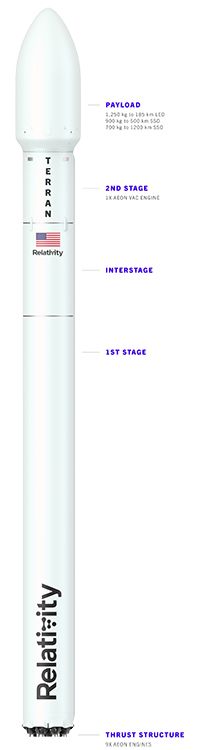 Voici le premier lanceur, non réutilisable, de la firme qui sera lancé : le Terran 1. Il est conçu pour effectuer des lancements pour le déploiement de constellations. Il sera donc imprimé en 3D à 90%.
