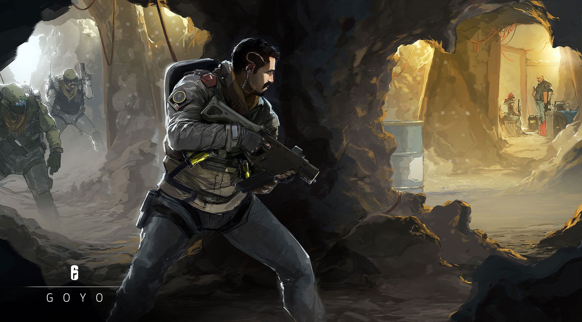 L’autre, Goyo, défenseur va mettre le feu à la carte, disposant de trois boucliers déployables, sur lesquels un simple bidon inflammable est caché. Un coup de feu dans le bidon et c’est toute une petite zone qui devient la proie des flammes, empêchant ainsi tout attaquant de passer par cette zone sur un temps donné.