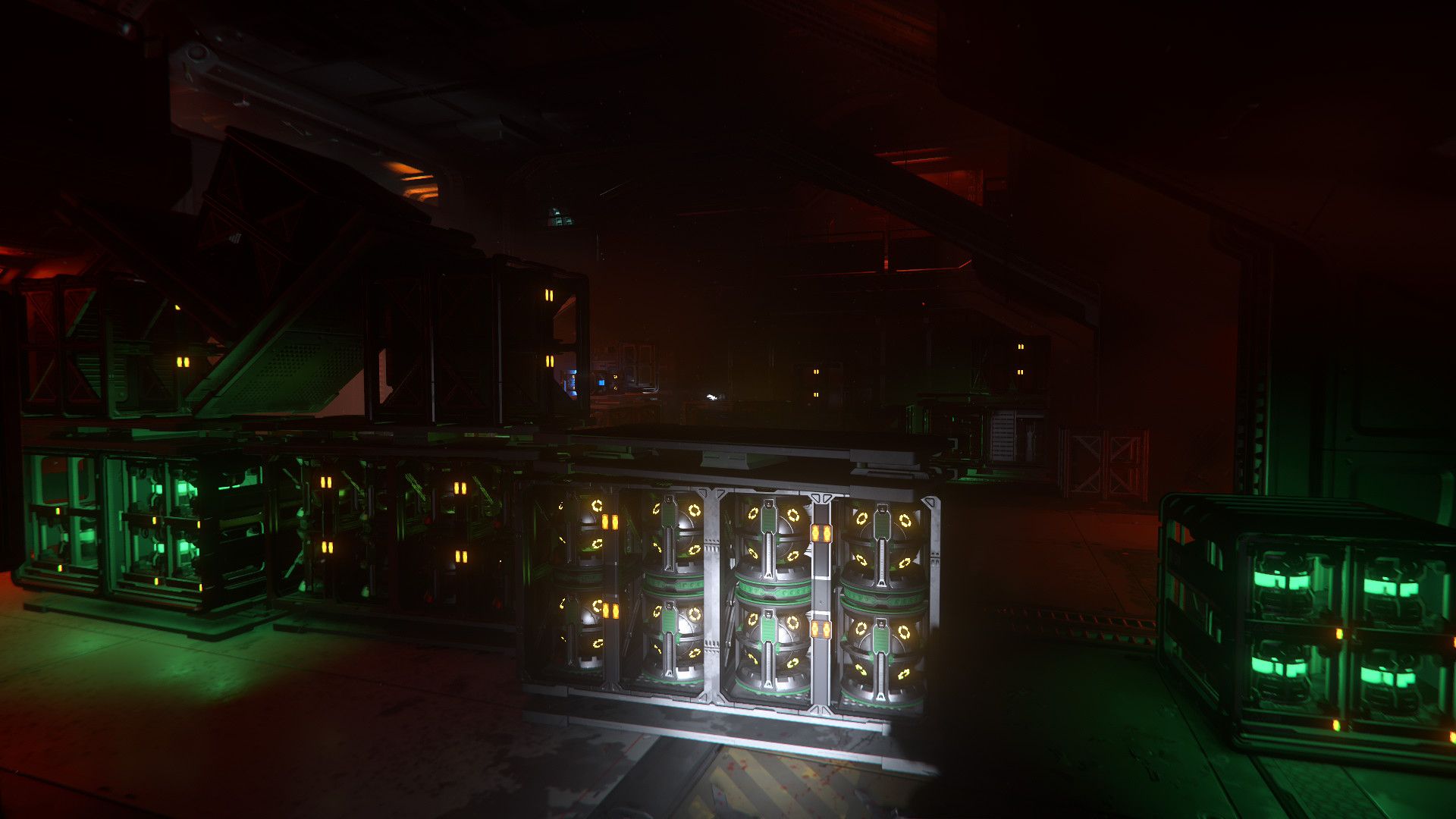 La soute sera remplie de caisses stockées dans des armoires que vous devrez récupérer dans votre vaisseau. Allumez le générateur près de la porte principale pour l’ouvrir et positionnez la porte d’accès de votre vaisseau en face. L’utilisation d’un module rayon tracteur est fortement recommandée.