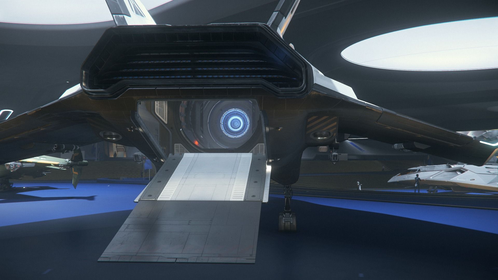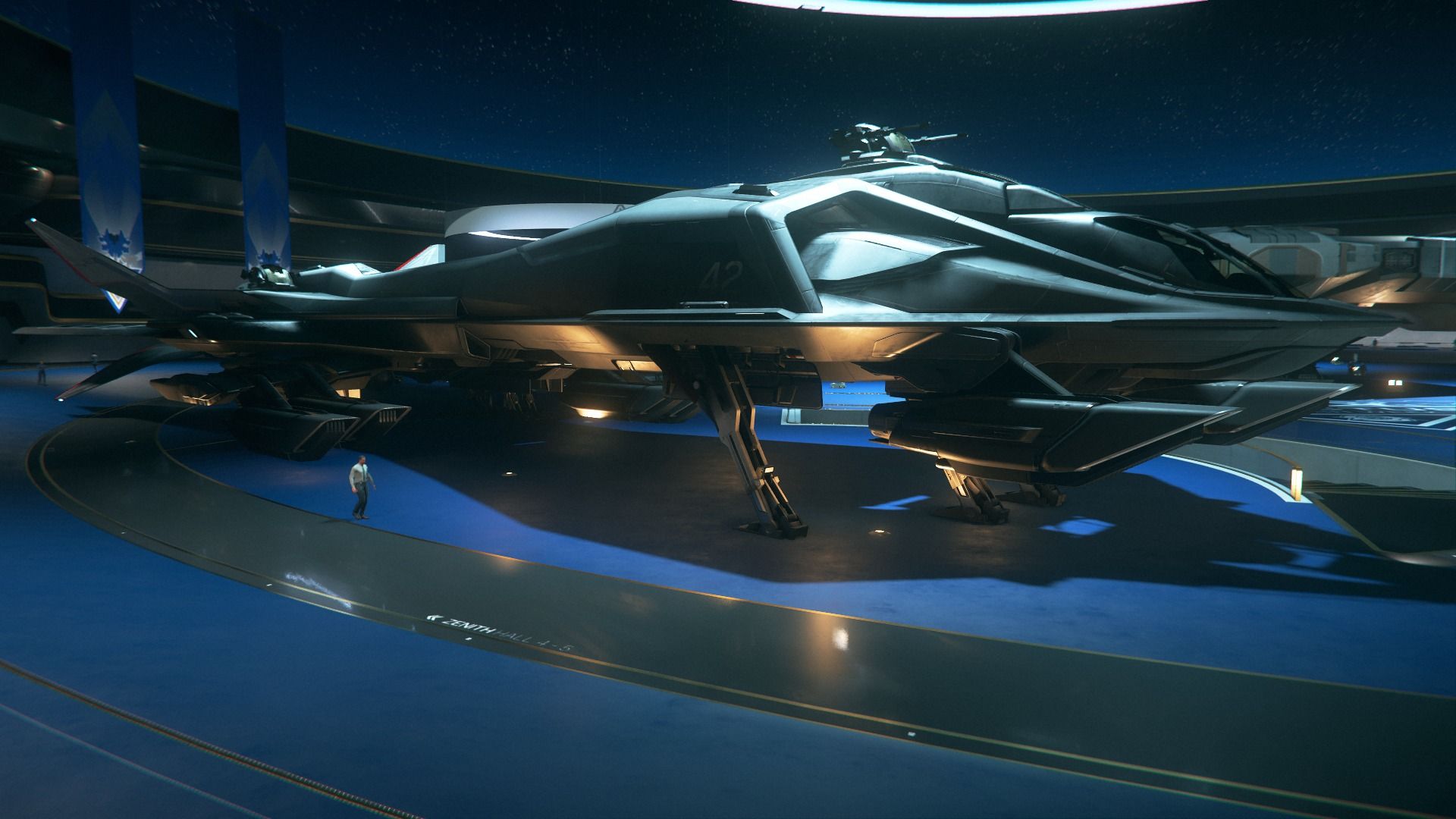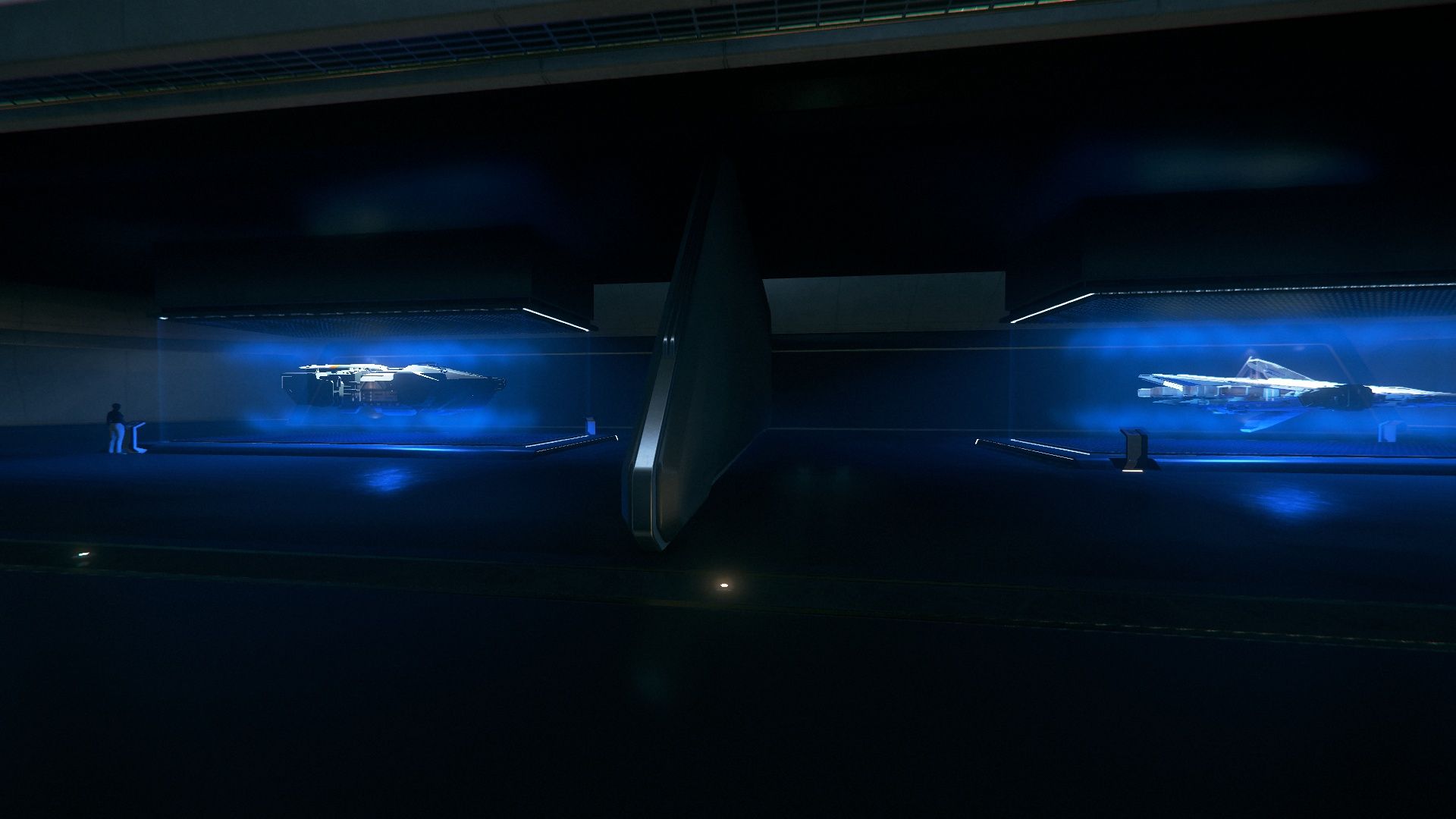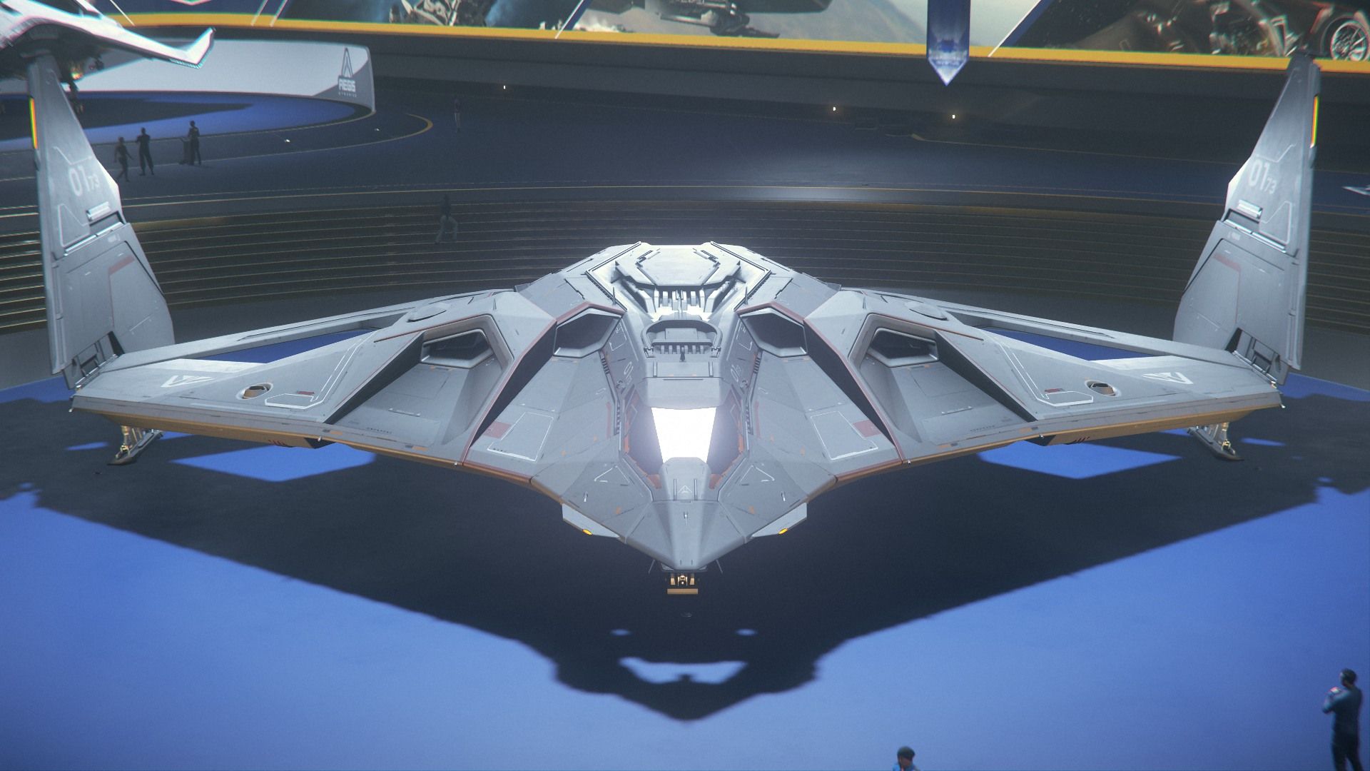 Au milieu de ce hall trône un Eclipse. Ce bombardier furtif est le seul vaisseau qui peut faire penser à un avion qui existe pour de vrai : le Northrop B-2 Spirit de l’armée américaine.