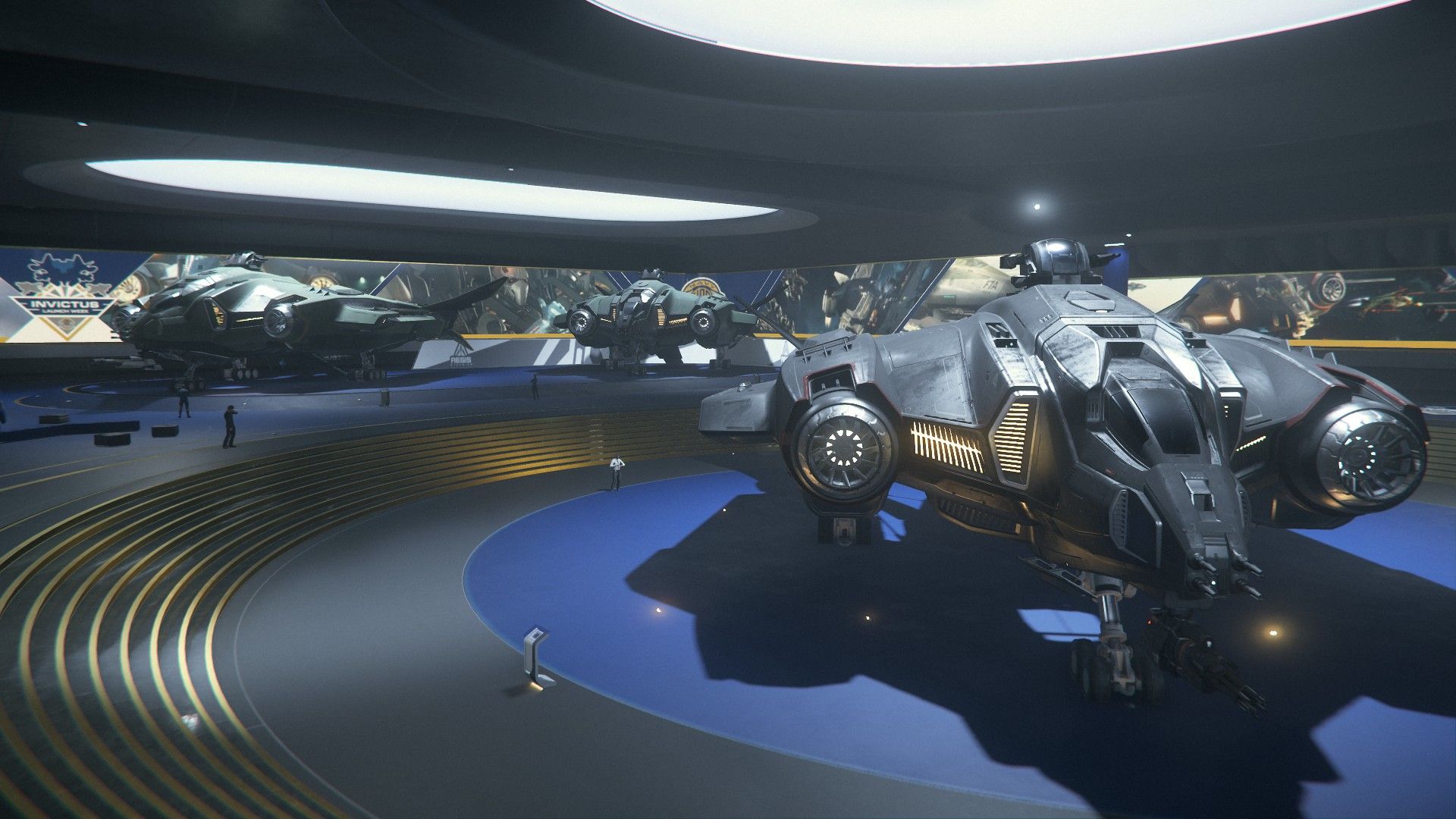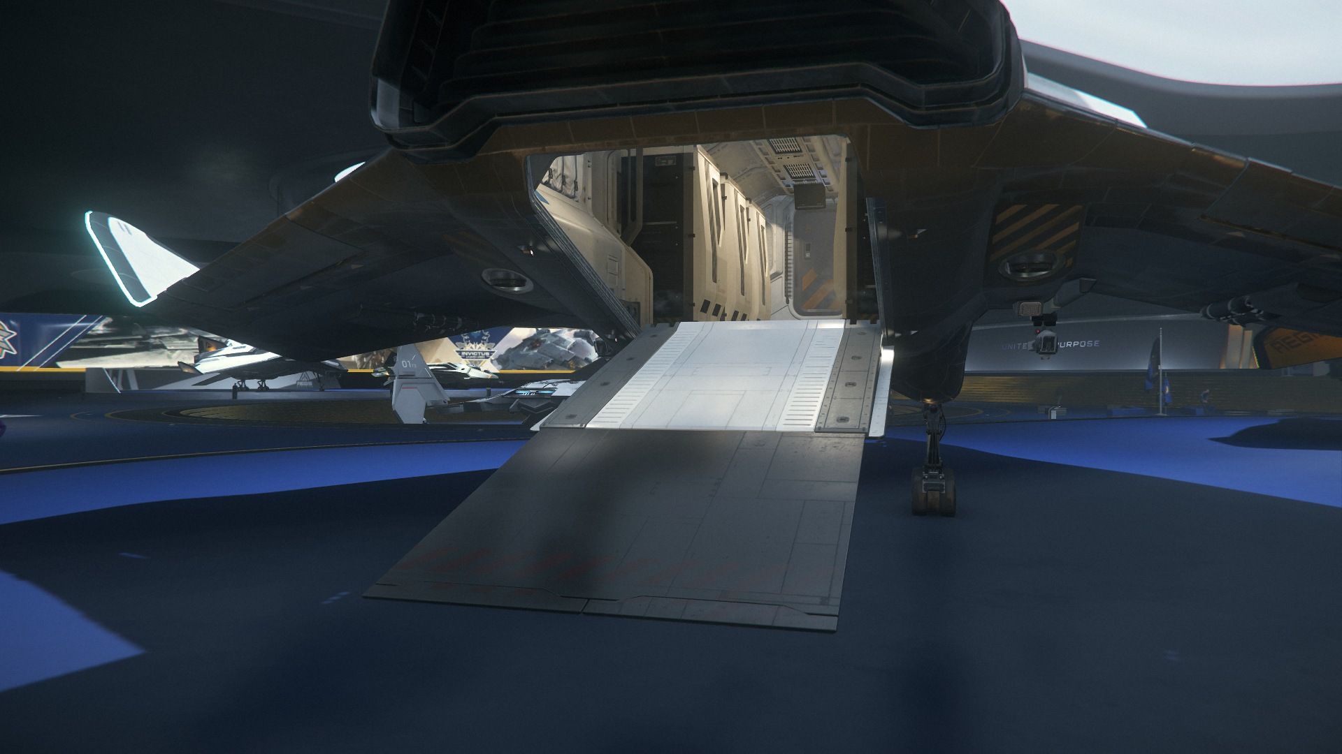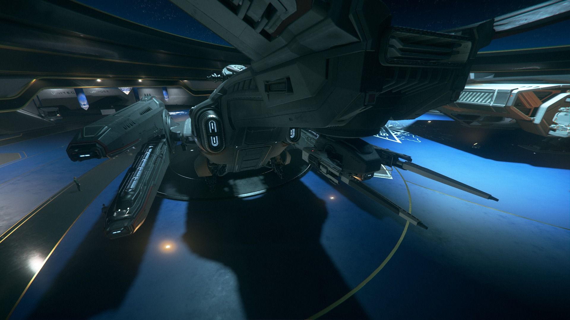 Au milieu de ce hall trône un Eclipse. Ce bombardier furtif est le seul vaisseau qui peut faire penser à un avion qui existe pour de vrai : le Northrop B-2 Spirit de l’armée américaine.