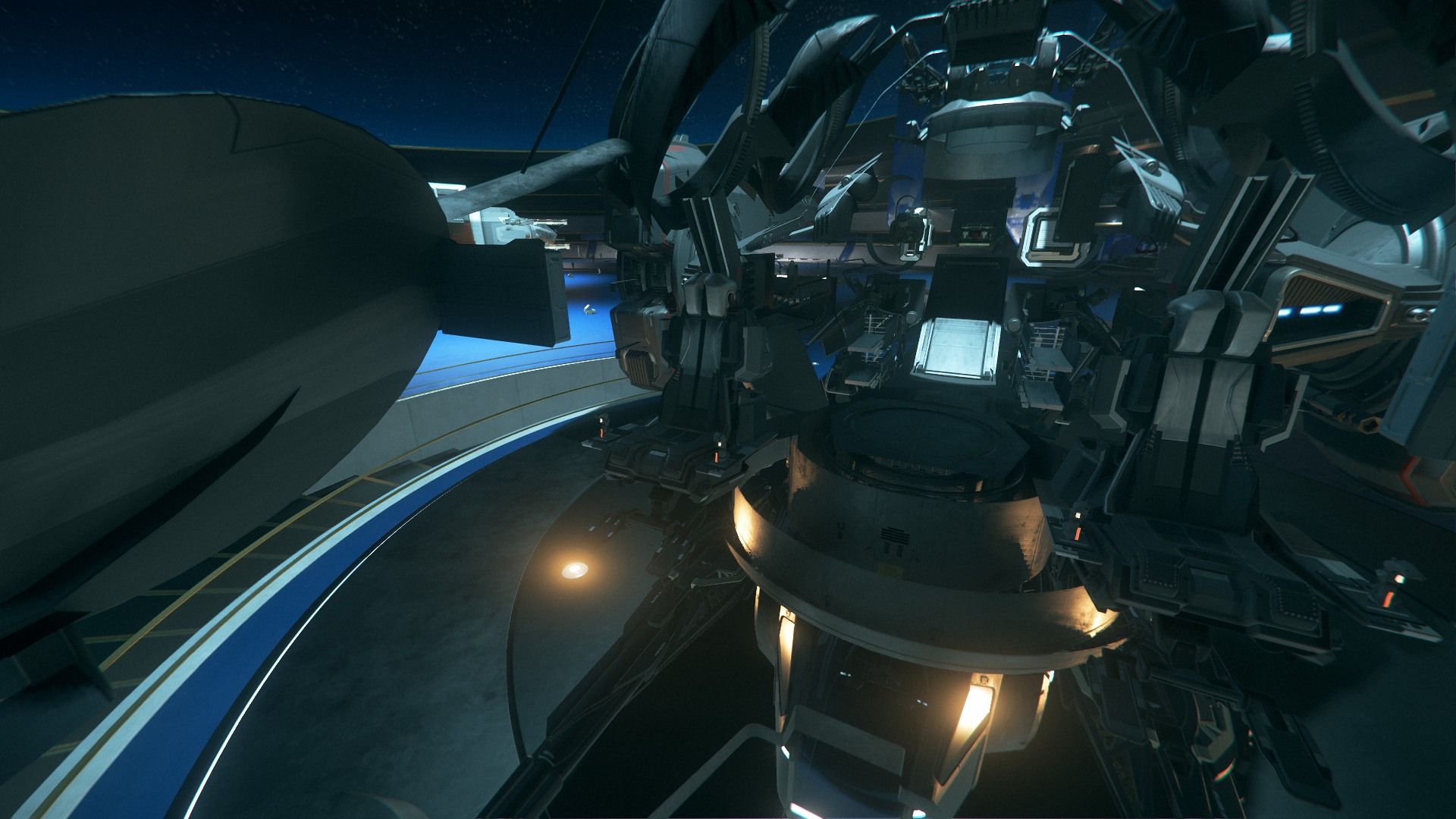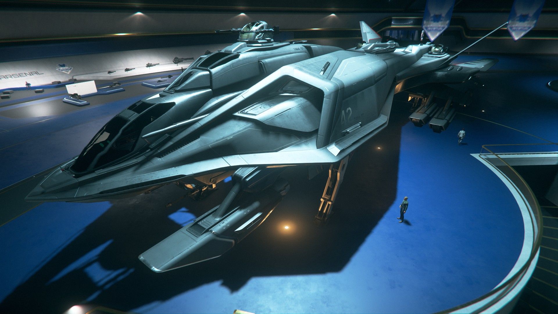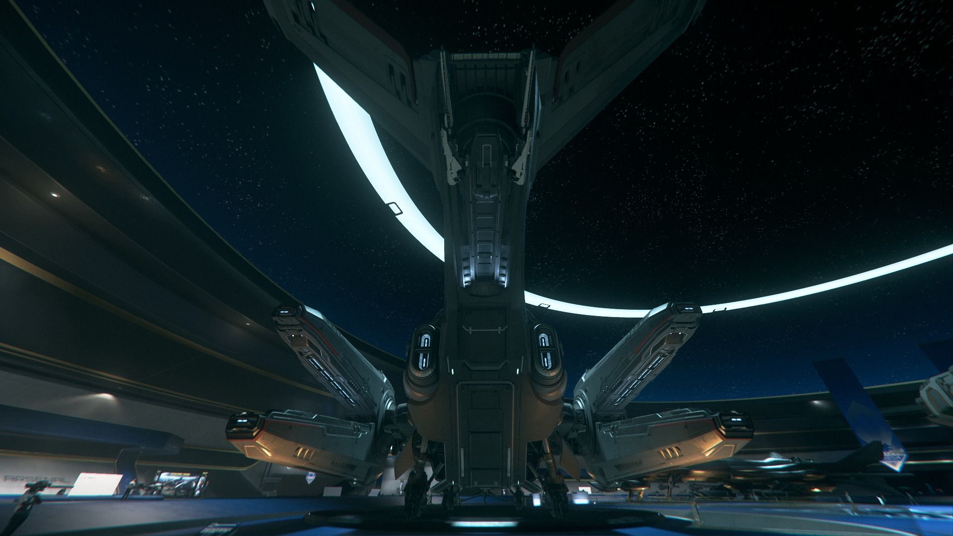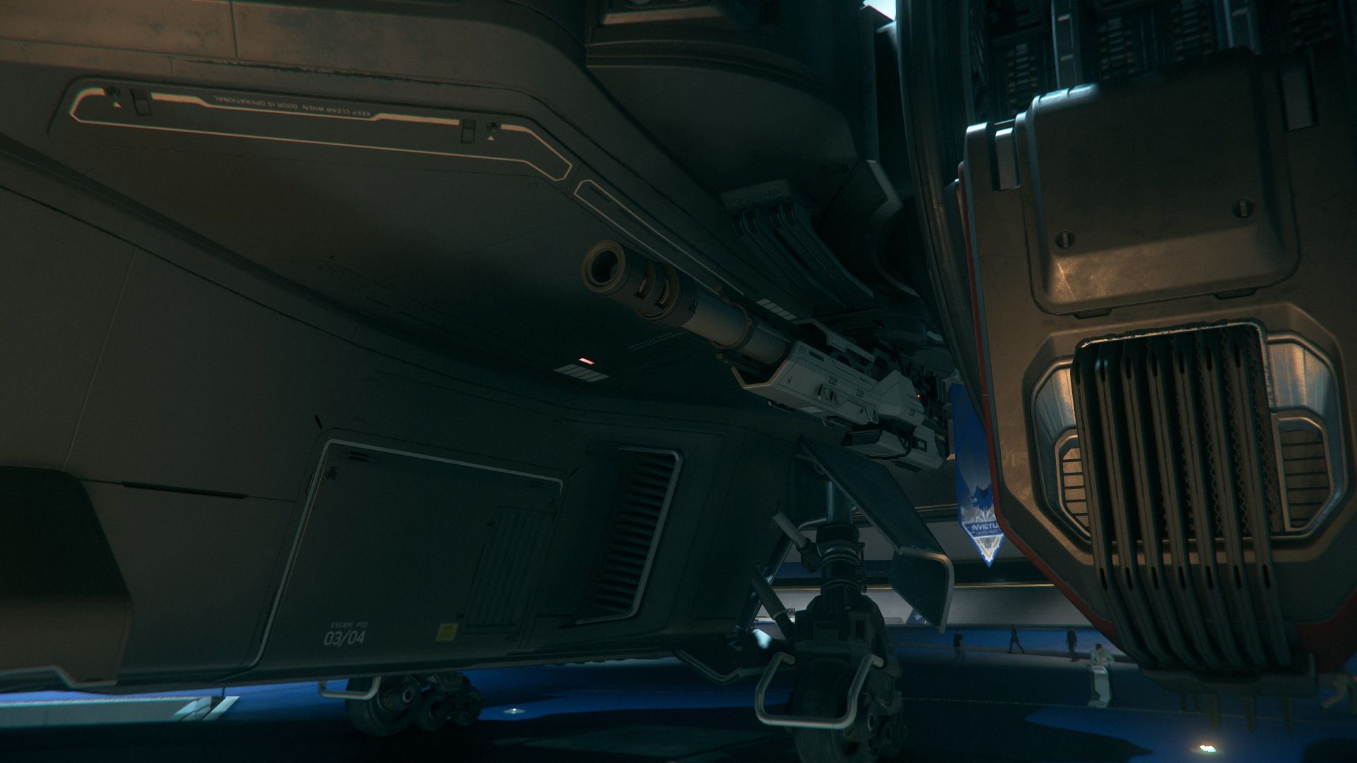 Au milieu de ce hall trône un Eclipse. Ce bombardier furtif est le seul vaisseau qui peut faire penser à un avion qui existe pour de vrai : le Northrop B-2 Spirit de l’armée américaine.