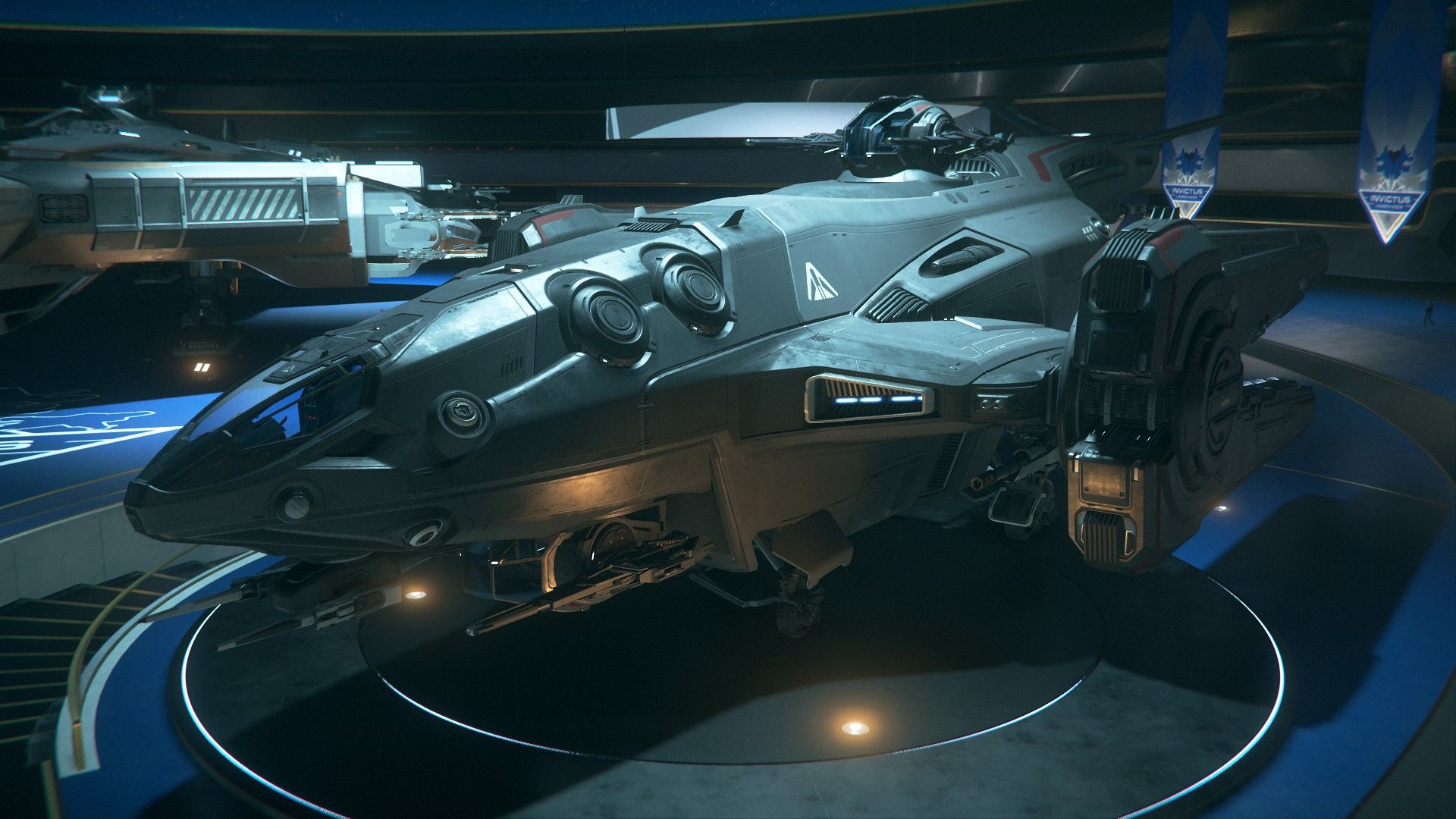 Voici donc les premières images du Redeemer en jeu. Le vaisseau conçu par la communauté est un gros vaisseau de combat muni de deux tourelles classiques, de deux tourelles télécommandées et de deux gros canons. La version présentée dans cet Invictus Launch Week 2951 est donc bien taillée pour le combat.