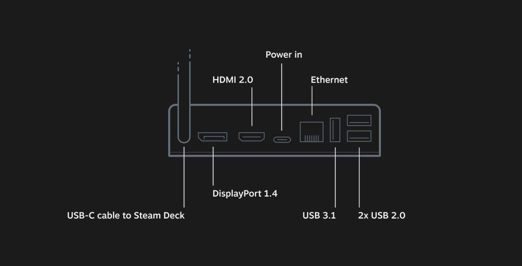 Pour finir avec les caractéristiques, le Steam Deck bénéficie également d’une station d’accueil (vendue séparément) pour jouer sur des écrans plus grands, comme votre TV.