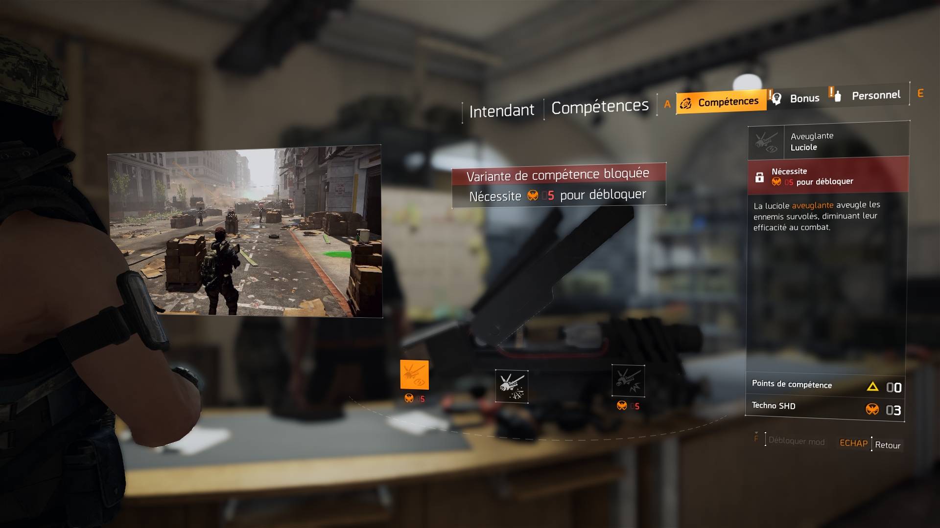 Les compétences sont déblocables à la Maison Blanche, elles vous aideront à remplir vos missions, elle seront vos meilleures amies, chacune d’entre elles dispose de plusieurs variantes qui pourront être débloquées avec des points de Techno SHD.