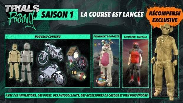 Depuis le vendredi 22 mars, Ubisoft a lancé la saison 1 de Trials Rising, qui pour rappel est disponible depuis le 26 février sur PC, PS4, Xbox One et Nintendo Switch.