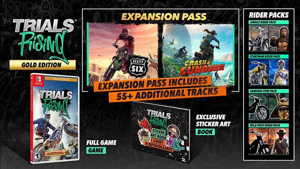 • Trials Rising Crash and Sunburn – Expansion II : Dirigez-vous vers le sud de l’équateur pour traverser des environnements aussi bien dangereux qu’accidentés comme les montagnes du Pérou ou encore les vastes plaines gelées de l’Antarctique. Deux nouvelles motos ainsi qu’une tenue d’explorateur, compléteront ce « DLC ».